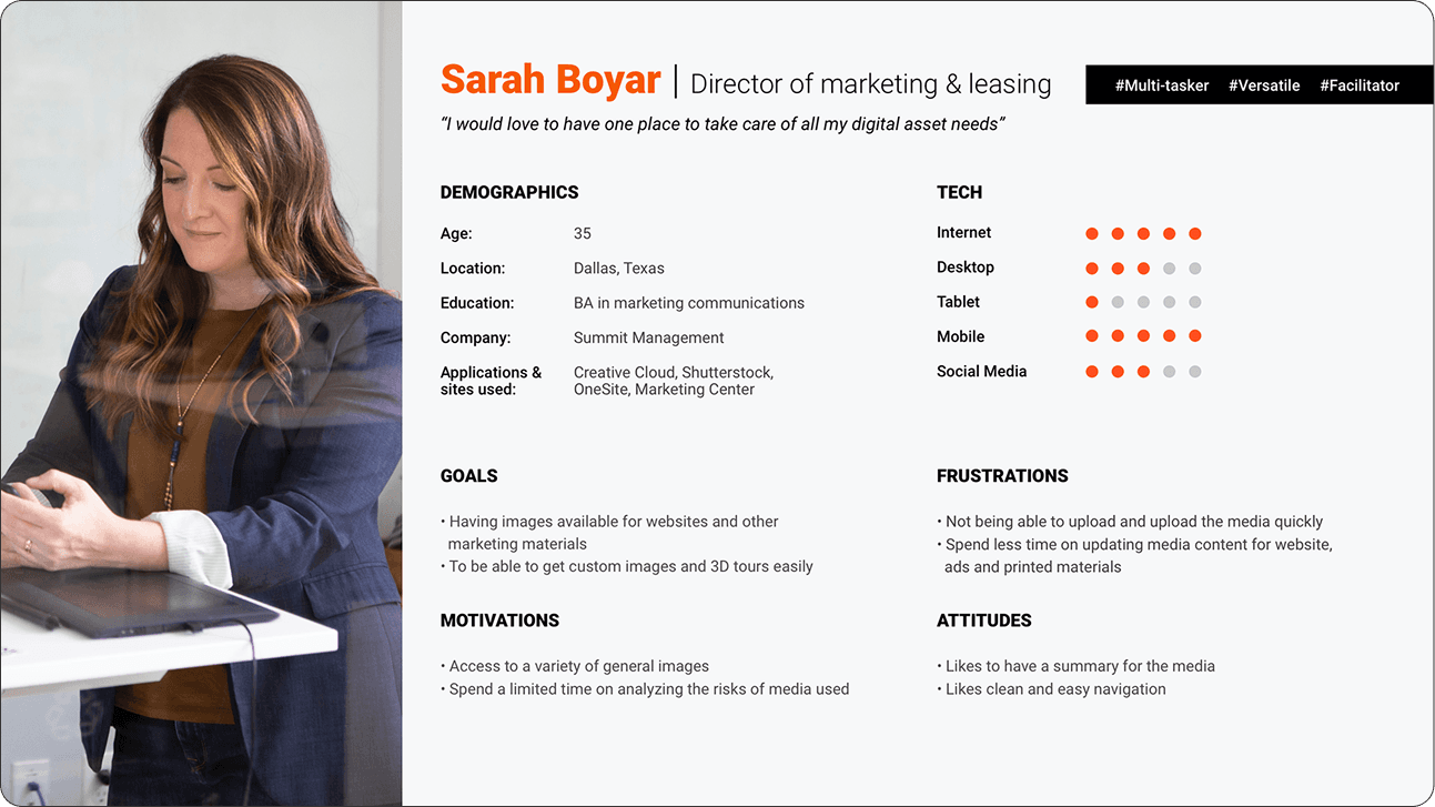 From moderated user interviews we were able to learn about property professional’s goals, frustrations, motivations, and attitudes.